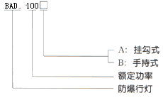 BAD-隔爆型防爆燈(IIB)(手提行燈)型號(hào)意義: