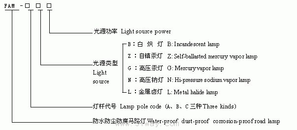 FAM-□系列防水防塵防腐馬路燈型號說明