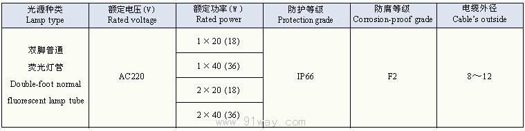 FAY-□×□系列防水防塵防腐全塑熒光燈主要技術參數: