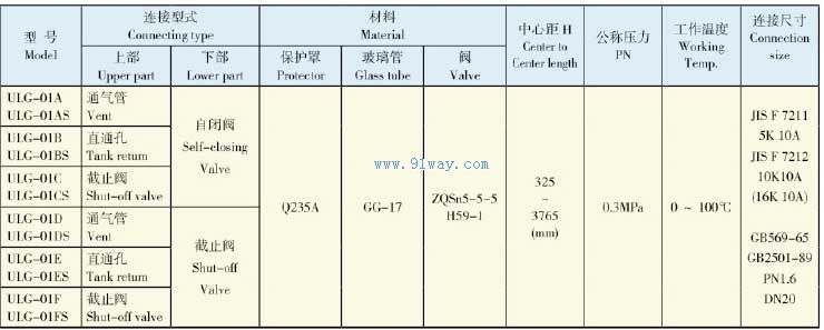 ULG-01D、01E、01F型玻璃罐液位計適用于船舶的小型水柜和輕質油柜(小于500L)液位的顯示和測量。