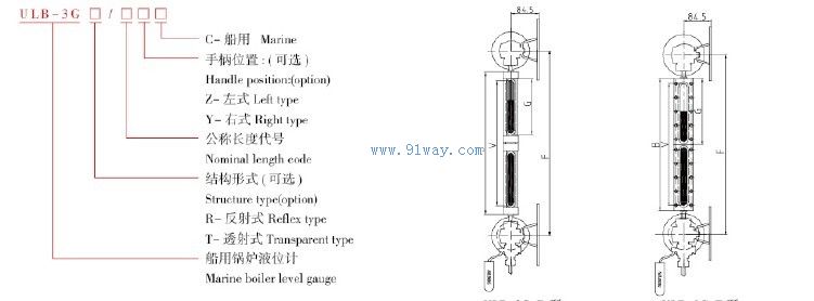 ULB-3G型船用鍋爐液位計選型說明及外形尺寸