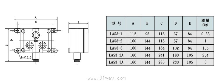 LA53系列防爆控制按鈕(ⅡB)型號意義: