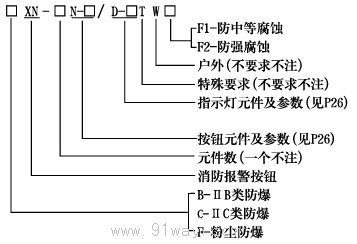 □XN-防爆消防報警按鈕(ⅡB、ⅡC)型號說明