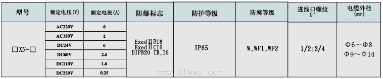 □XN-防爆消防報警按鈕(ⅡB、ⅡC)主要技術參數: