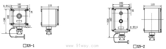□XN-防爆消防報警按鈕(ⅡB、ⅡC)外形尺寸