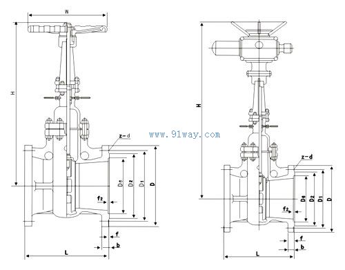 L | D | D1 | D2 | D6 | f | b | f2 | Z-φd | 手動 Manuall | 電動 Electricall | ||||