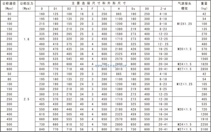 注: Z6S41T一10、Z6S41H一16、Z6S41H一25、Z6S41H一40、Z6S41H一64閘閥的氣缸單程耗氣量(以壓縮空氣體積計算)