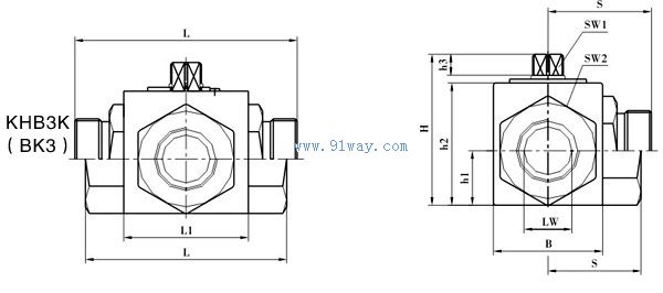 ① 系列代號:KHB3K(BK3)系列二位三通球閥