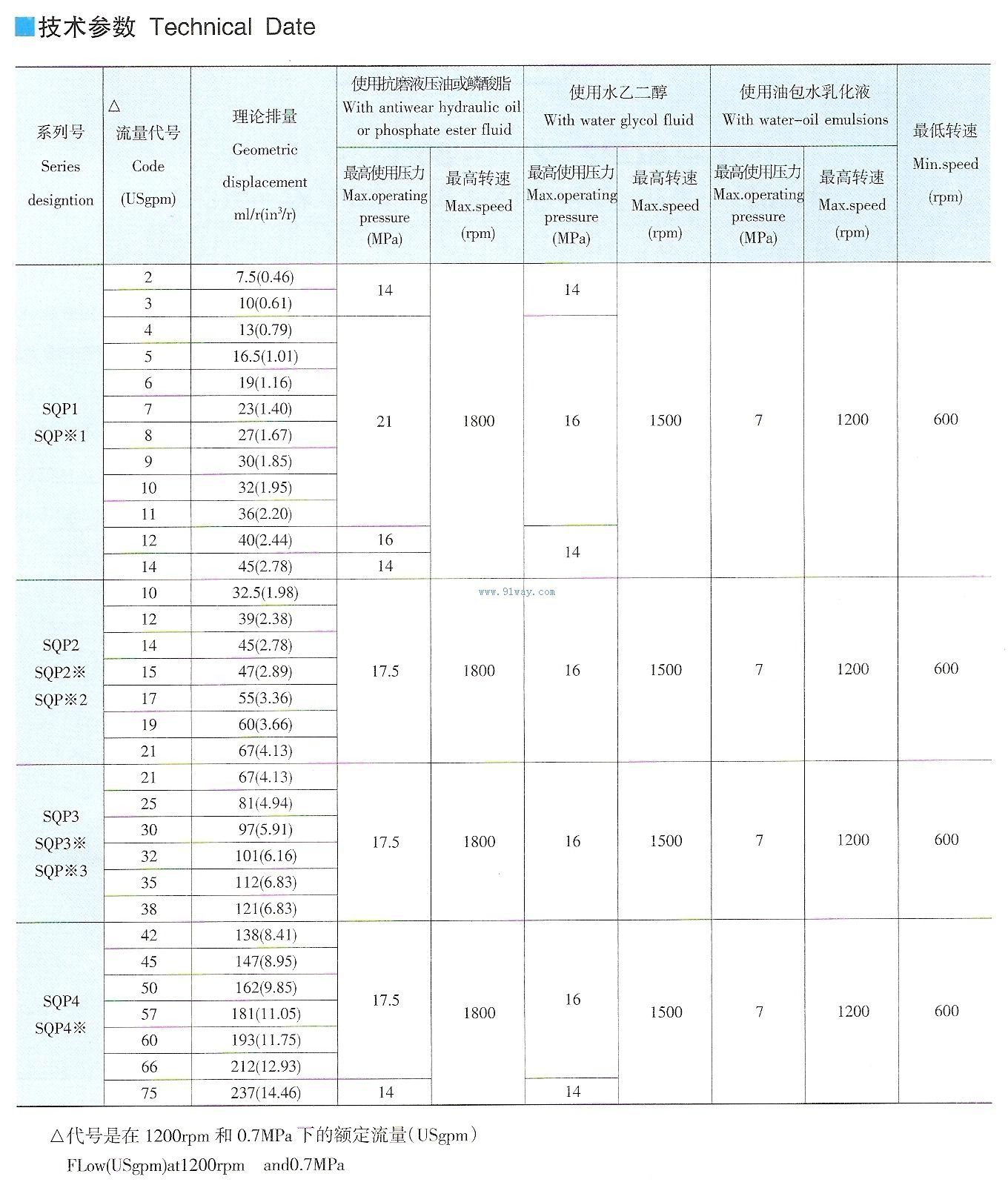 SQP系列低噪聲子母葉片泵芯主要技術(shù)參數(shù)