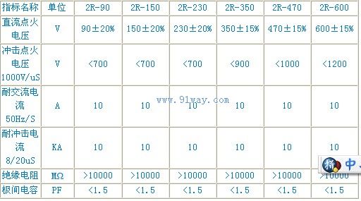 6/8-2R系列放電管詳情: 外形尺寸 主要型號和性能