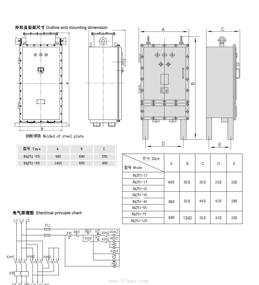 BQJ51-系列防爆星三角起動箱(ⅡB)適用范圍: