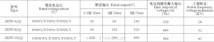 JSJW-3Q,6Q,10Q系列戶外電壓互感器 技術參數(shù)