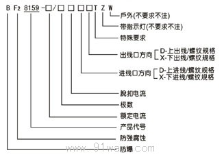 BF28159系列防爆防腐斷路器(ⅡB,ⅡC)型號意義: