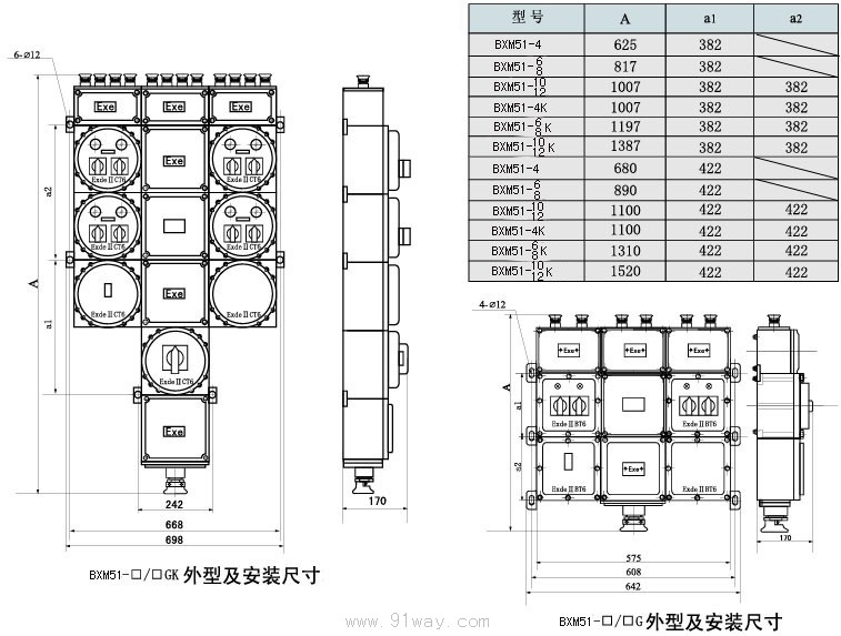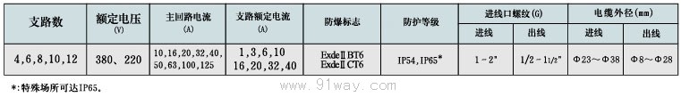 主要技術參數: BXM51系列防爆(光控)照明配電箱(ⅡB、ⅡC)