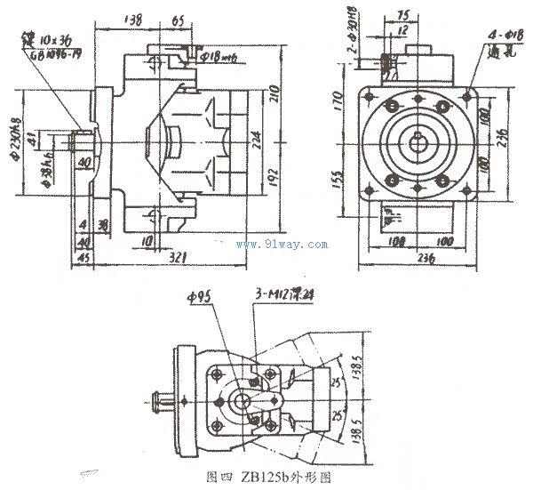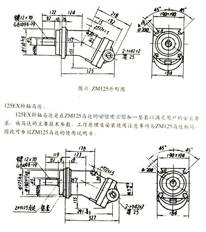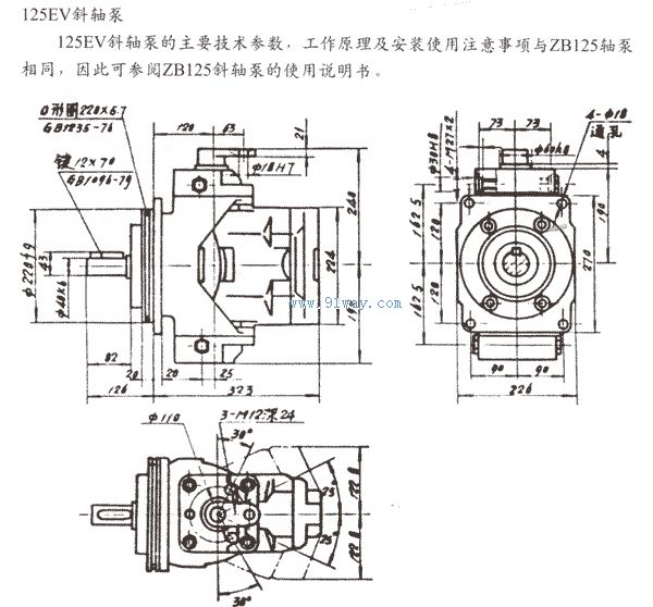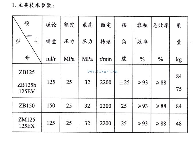 一、ZB125斜軸式軸向柱塞泵主要技術參數和特性曲線 二、外形尺寸安裝圖
