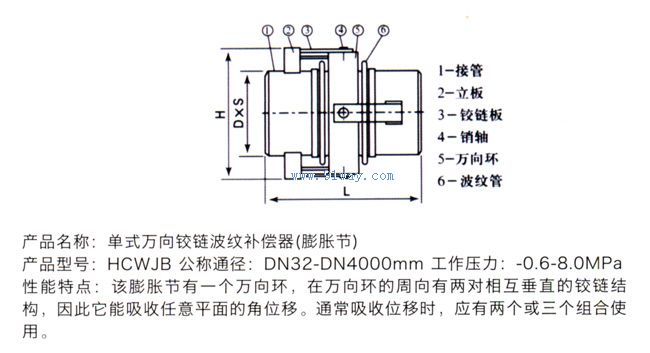 HCWJB單式萬向鉸鏈波紋補償器(膨脹節(jié))產(chǎn)品詳細(xì)說明: