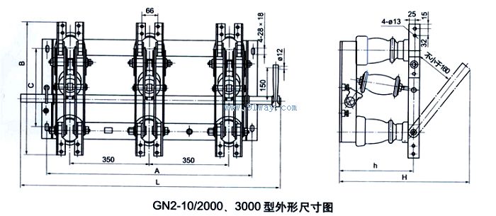 GN2型戶內三相高壓隔離開關由底座、支柱瓷絕緣子、操作瓷絕緣子和導電部分組成。