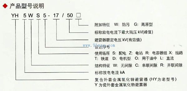 YH5WR-(5-51)/(13.5-134)保護(hù)電容組型避雷器型號(hào)說(shuō)明