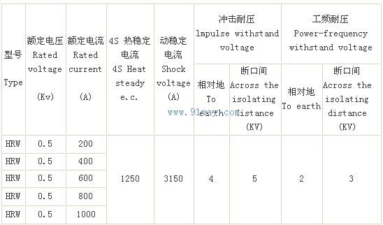 HRW-0.5(HRWK-0.5)型戶外低壓刀熔開關適用于交流50Hz,額定工作電壓0.5KV的配電線路中,作為變壓器低壓側的短路保護與過負荷保護,在一定的條件下可以切合空載變壓器,空載線路及額定工作電流. HRW-0.5刀熔開關技術參數
