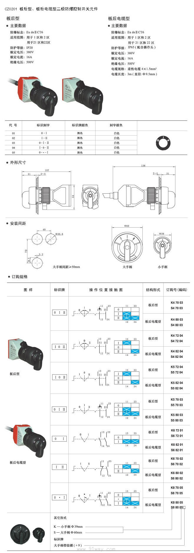 CZ0201系列板后(電纜)型二極防爆控制開關元件