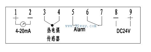 Q96-TC6A,ZTC6A型報警輸出熱電偶溫度表接線示意圖: