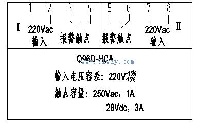 Q96D-HCA雙路頻率監測報警儀接線示意圖