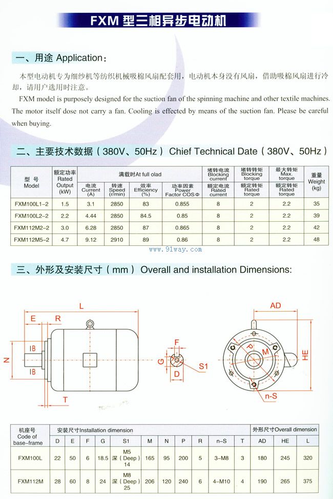 | 產品名稱: | FXM系列紡織用高效率三相異步電動機 | |||||
