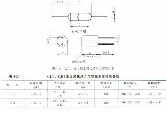 特征與用途: 氣候類別:55/70/10 電容量允許偏差:±5%、±10%、±20% 損耗角正切<0.015 絕緣電阻:C<0.33uF R>1200MΩ C>0.33UF R>100/C+100