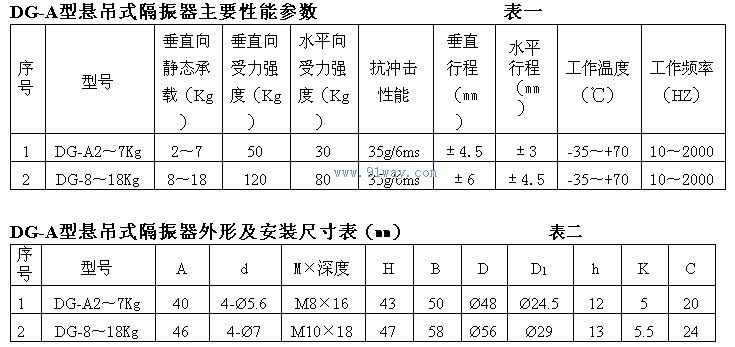 DG-A2~7;DG-A8~18兩種規格的隔振器
