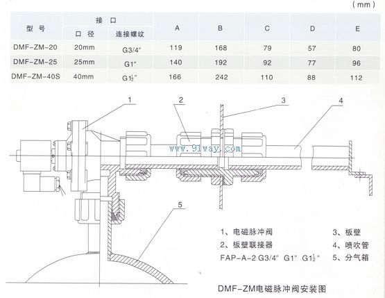 DMF-ZM電磁脈沖閥型號(hào)規(guī)格表