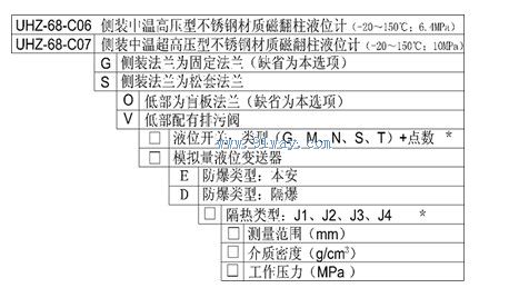 | 產品名稱: | UHZ68-C06/C07側裝中溫高超高壓型磁翻板液位計 | |||||