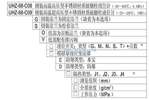 | 產品名稱: | UHZ68-C08/C09側裝高溫高超高壓型磁翻板液位計 | |||||
