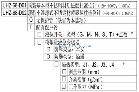 | 產品名稱: | UHZ68-D01/D02頂裝基本型磁翻板液位計 | |||||
