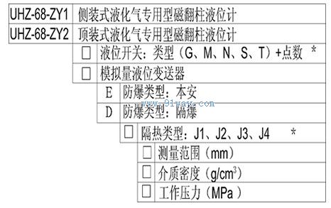 UHZ68-ZY1/ZY2液化氣專用型磁翻板液位計選型說明