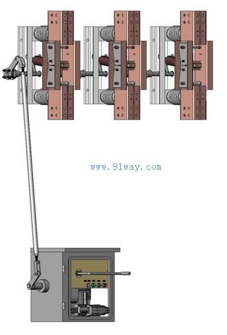將面板上聯鎖裝置撥開,此時電動操作不起作用,將手柄插入蝸桿軸上即可進行分合閘操作.