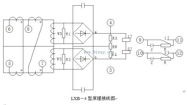 4、LXB-4型電流相位比較繼電器原理接線圖