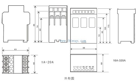 UL-E20系列電機(jī)保護(hù)器外形尺寸: