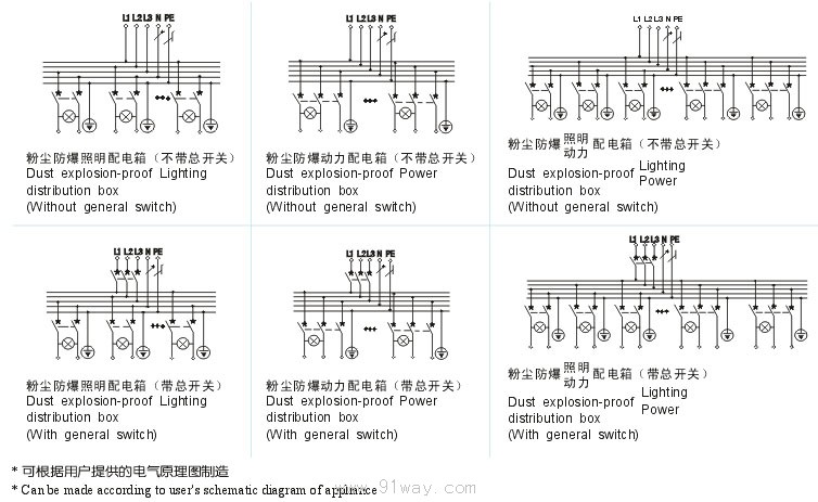 FBX(M/D)粉塵防爆(照明/動力)配電箱(DIP)電氣原理圖:
