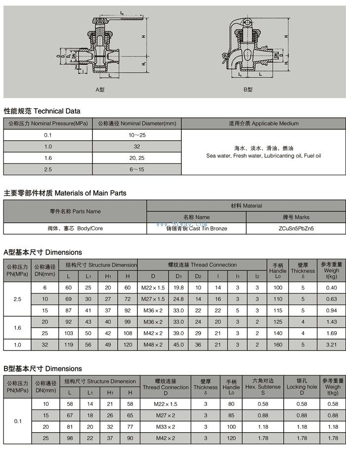 GB/T599-1996船用外螺紋青銅泄放旋塞閥