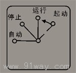 自動(dòng)、手動(dòng)、起動(dòng)三位置轉(zhuǎn)換 開關(guān),起動(dòng)自復(fù)位,起動(dòng)后必 須經(jīng)過停止檔位才能轉(zhuǎn)向自動(dòng)檔位。 |