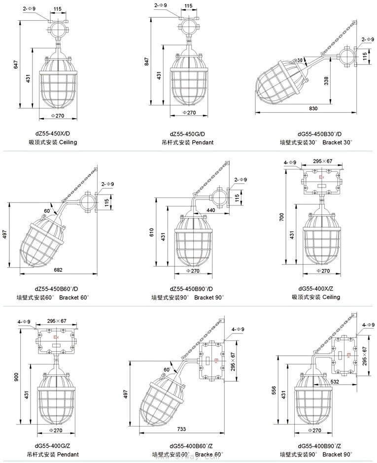 | 產品名稱: | d□55隔爆型防爆燈(ⅡB、ⅡC) | |||||