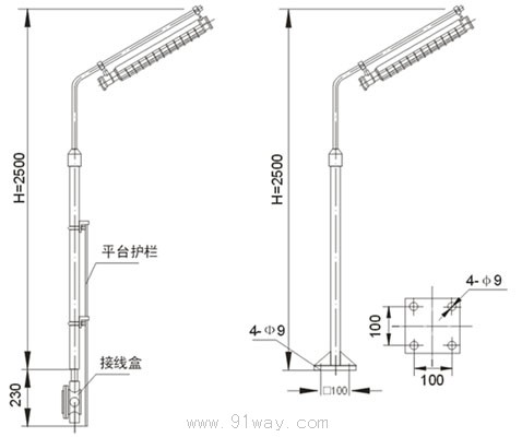 CBY52-XB平臺懸臂式防爆熒光燈(ⅡB)