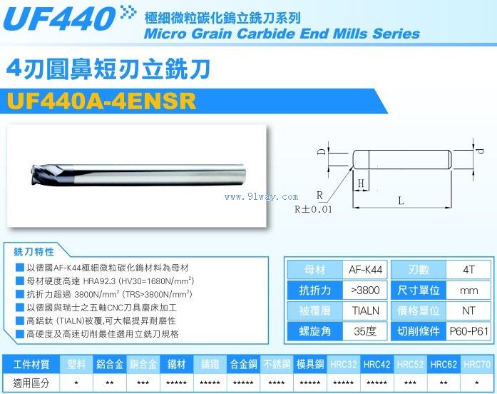 UF440-4系列四刃圓鼻短刃立銑刀