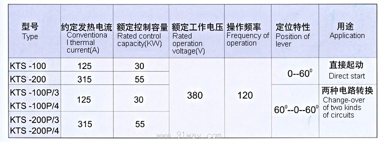 用途:KTS系列凸輪起動器用于交流50Hz或60Hz,電壓至660V的電路中,作兩種電路轉(zhuǎn)換之用及控制三相異步電動機的直接起動或停止。