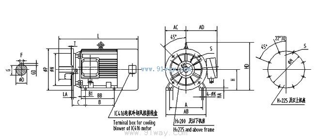 從軸伸端視之,電機接線盒位于機座右側(355及以上機座號為機座上方)。用戶如有特殊要求,請訂貨時說明,另行商議。