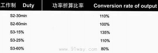 電機的基準工作制為斷續周期工作制S3,負載持續率為40%。其它工作制可按表1對技