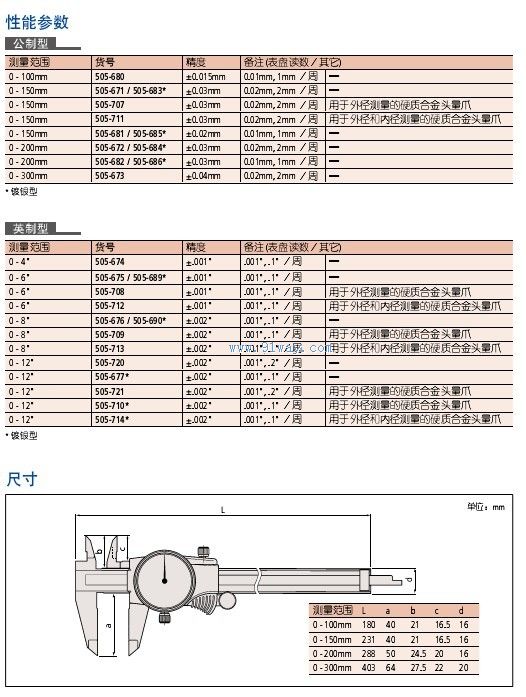 | 產品名稱: | 505系列帶表卡尺 | |||||