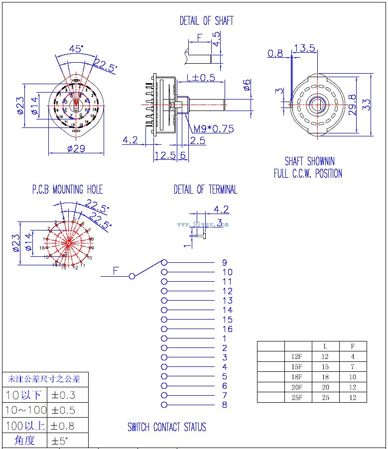RS30旋轉式波段開關最多可做16檔,旋轉壽命15000次以上,可用于調光,調音等產品上用來改變功率。