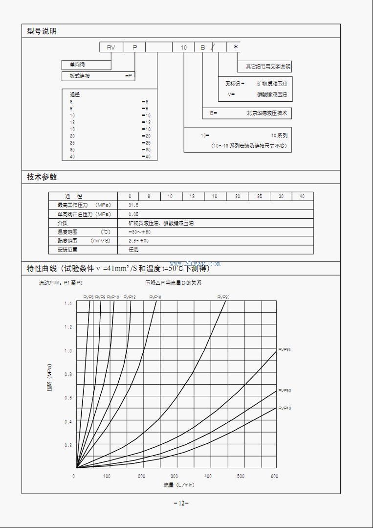 RVP單向節流閥結構特點: 允許油液一個方向自由流動,反向則油液被截止。采用錐閥結構和板式連接。壓力損失小,一般用于泵的出口處,作為背壓閥或旁路閥使用。