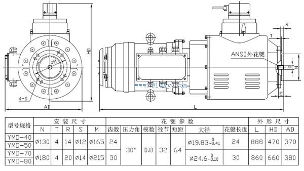 YMD型阻尼式自適應回轉調速驅動機構為塔式起重機用電動機安裝尺寸: